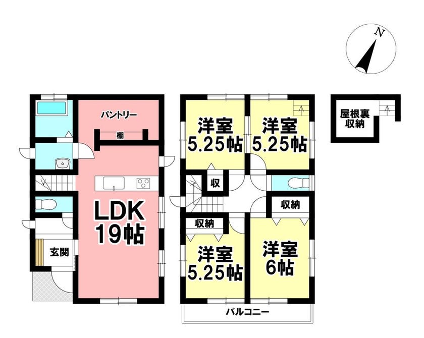 ・パントリー&屋根裏収納付き