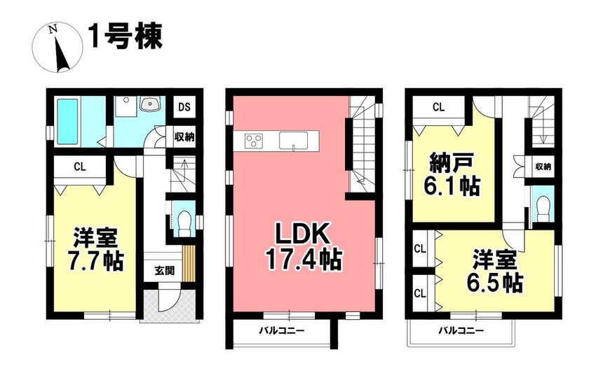 (1号棟)、価格3880万円、2LDK+S、土地面積73.79m2、建物面積94.39m2