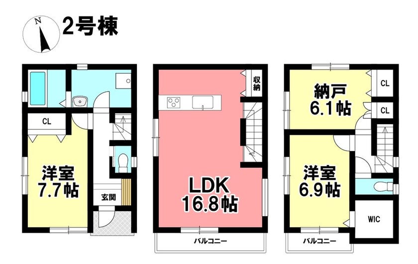 (2号棟)、価格3880万円、2LDK+S、土地面積72.74m2、建物面積95.63m2