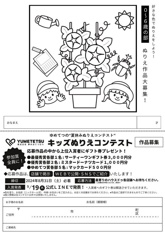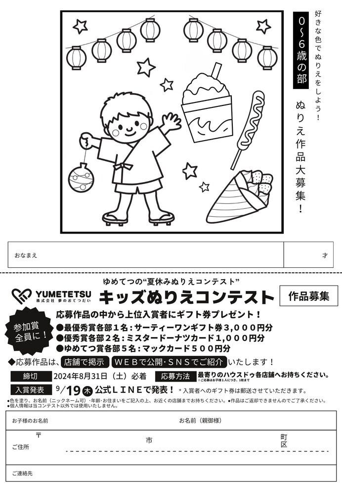 ▼ゆめてつプレゼンツ!キッズぬりえコンテスト