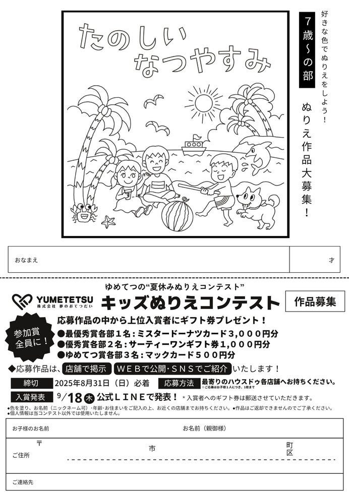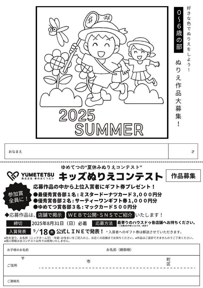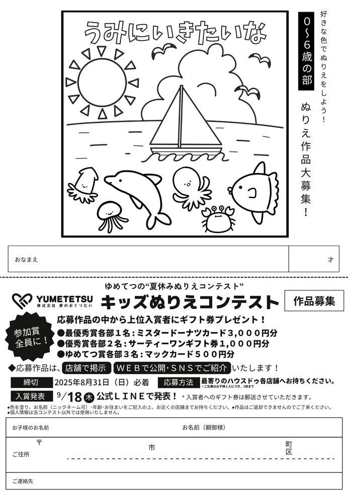 店舗へぬりえご提出の際に参加賞をプレゼントいたします!